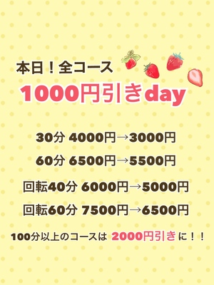 全コース1000円引きday!!